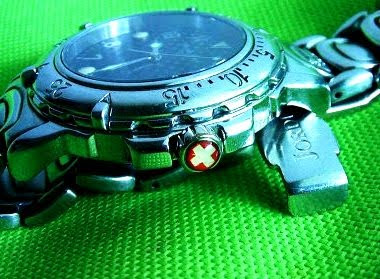 Bingo....eureka!! saya teringat satu koleksi lama, sangat identik. Terpilih-lah Swiss atau Swizterland sebagai tim idola saya. Sebab, secara kebetulan saya masih punya simpan ikon horologi yang sesuai. MICHEL JORDI, seri Ethno Professional Diver. Edisi peringatan 700 tahun berdirinya negara Swiss, 1291-1991. Dipermanis dengan lingkar crown bertatah bendera negara bersangkutan. Obsesi terselubung, demi dukung skuad Swiss unggul dilapangan HIJAU. RED squad on the GREEN field!!!